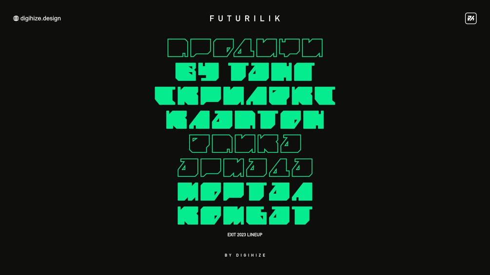 Futurilik is Digihize's first official Cyrillic font, free for personal or commercial projects.