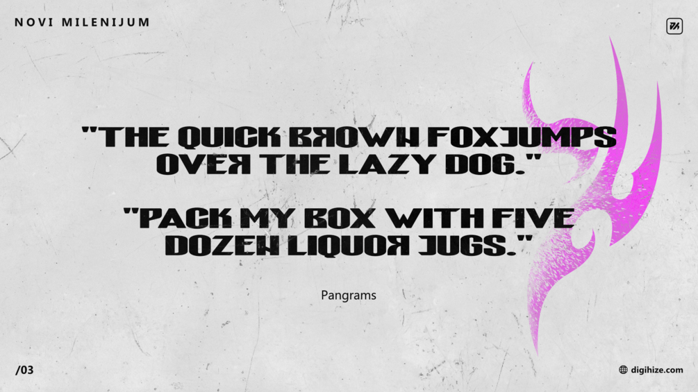 "Novi Milenijum" is a Y2K sans-serif font designed by DIGIHIZE.
